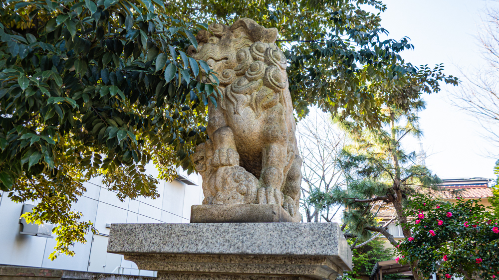 左手に鎮座する狛犬は、まるで椎木に顔をうずめているかのような、どこか愛嬌のある姿をしており、思わず足を止めて見入ってしまいました。